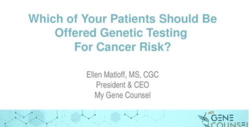 Ms Matloff discusses which current and past patients are candidates for cancer genetic testing and explains why sharing genetic testing data is critical to clinical research and the future of patient care.