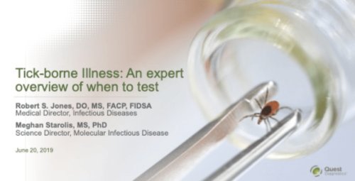Dr Jones and Dr Starolis describe the various organisms and diseases that cause major tick-borne illnesses, the available testing options and which to choose for various clinical scenarios, and review result report interpretation.